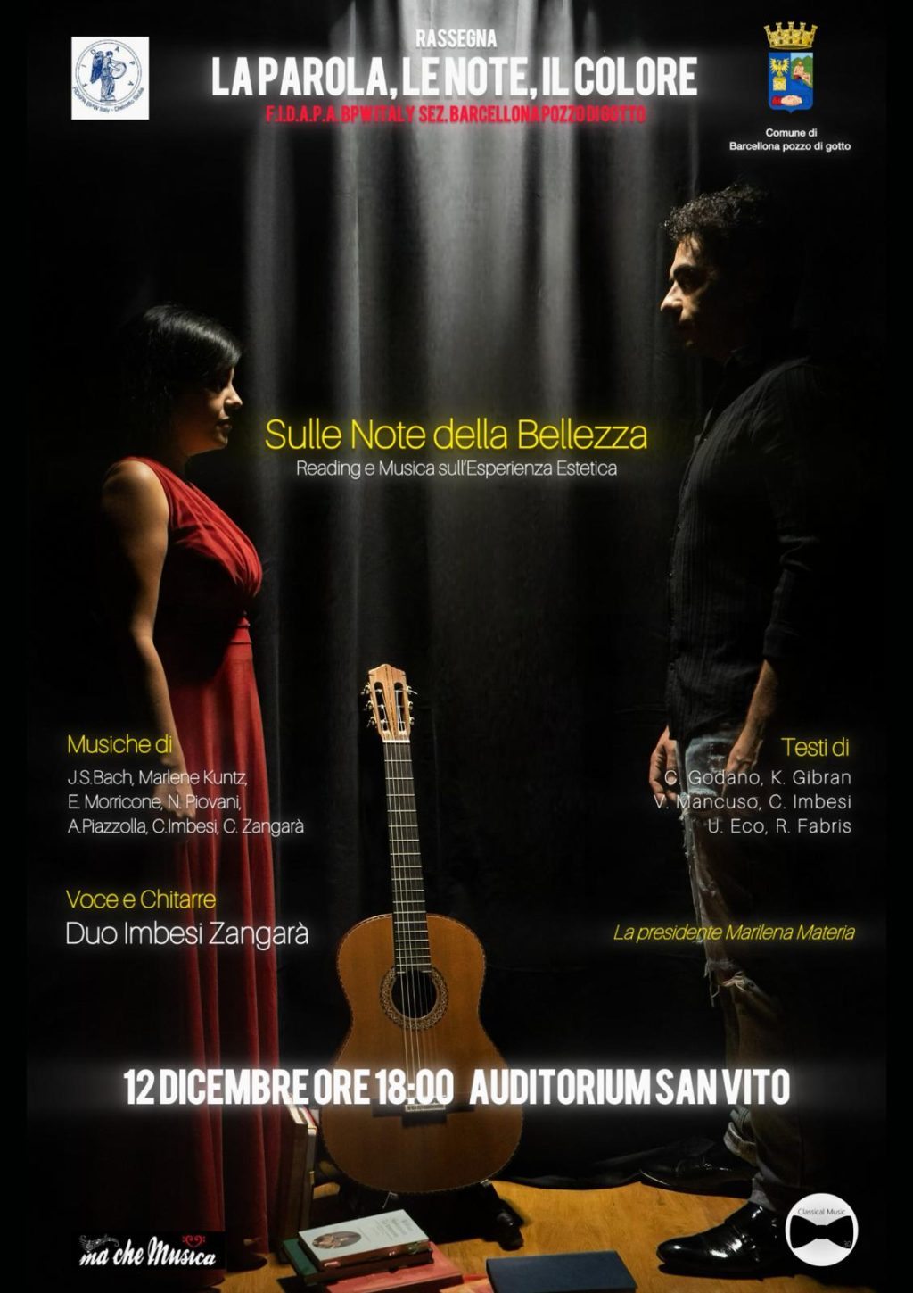 La F.I.D.A.P.A. BPW Italy – Sezione di Barcellona Pozzo di Gotto informa che, nell’ambito della rassegna culturale “La Parola, le Note, il Colore”, si terrà l’evento: “Sulle Note della Bellezza” – Reading e Musica sull’Esperienza Estetica Lo spettacolo, interpretato dal duo formato dai Maestri Carmelo Imbesi e Carmen Zangarà, avrà luogo venerdì 12 dicembre 2025, alle ore 18:00, presso l’Auditorium…